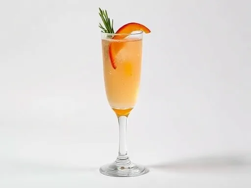- Fill up with champagne and garnish with a slice of peach.