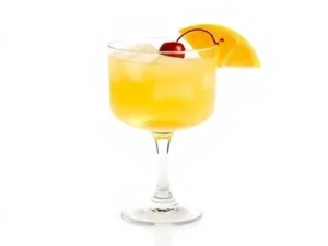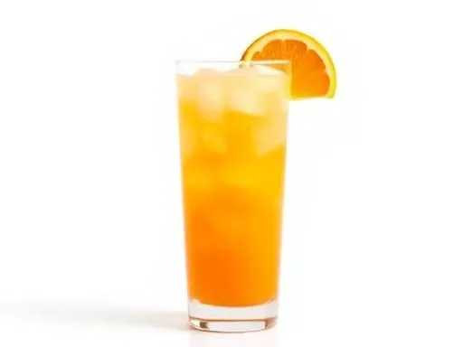 - Fill with orange juice, garnish with a cherry, and serve.