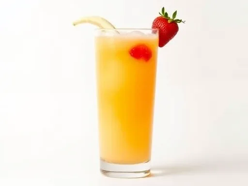 - Garnish with a strawberry and a slice of banana, and serve.