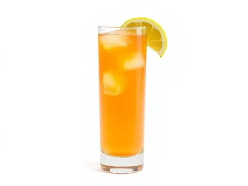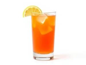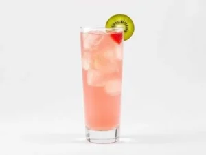 - Strain into a highball glass, garnish with a fruit flag, and serve.