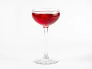Crème de cassis and Kirschwasser cherry brandy shaken and strained over ice in a wine glass with soda water. The cas...