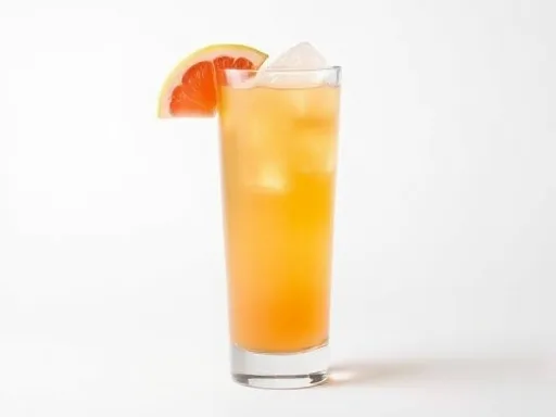 - Pour vodka and grapefruit juice into a highball glass filled with ice cubes.